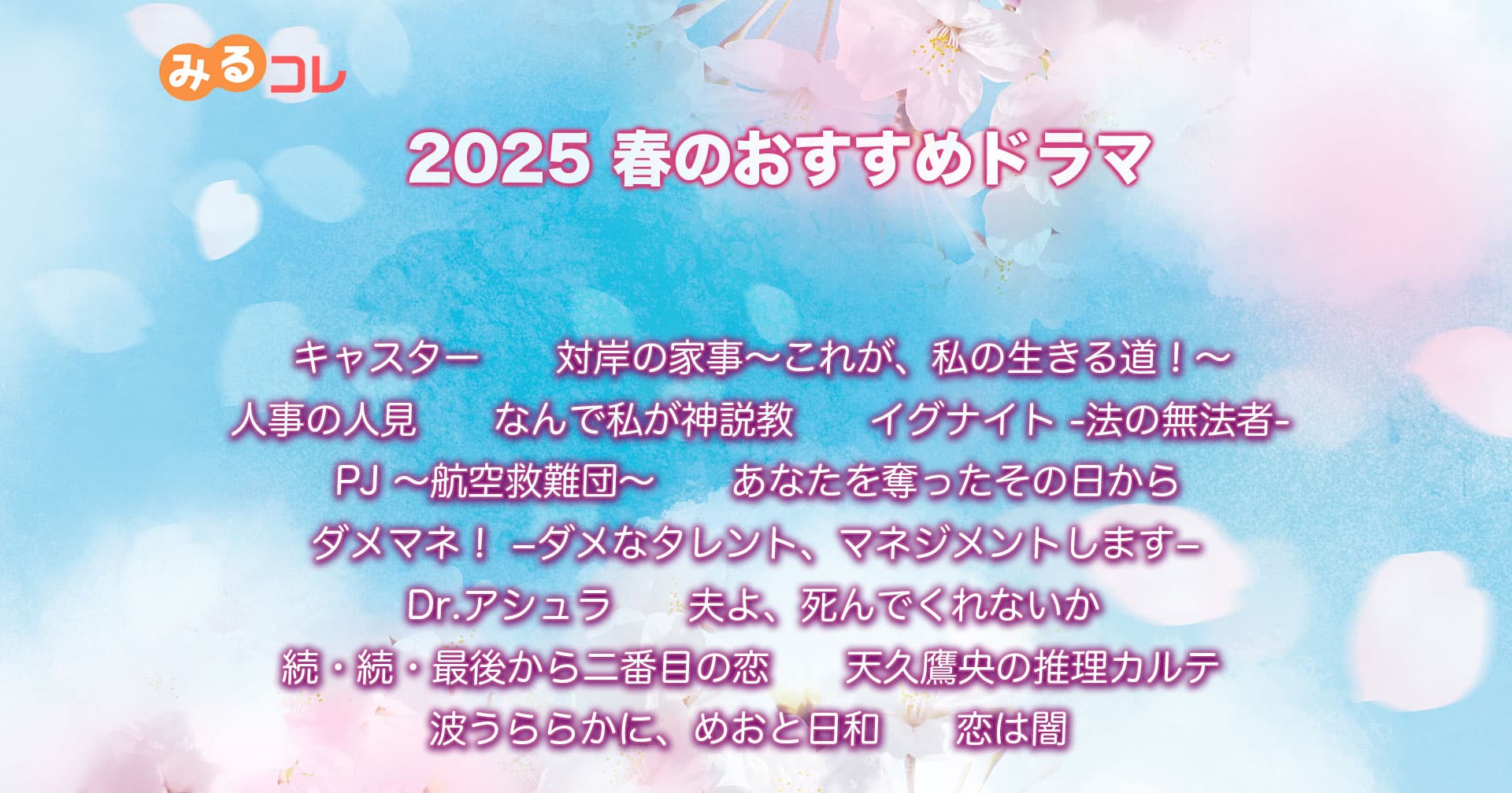 されていますね。2025年の春はどんな素敵なドラマに出会えるのか、今からワクワクしています。そこで、今回も