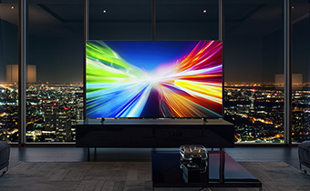 有機EL発光層を3色4層にし、従来の約1.3倍*1の明るさを実現。また、各色純度を高めることで色域も約1.1倍*2へ。さらに、新開発の低反射ARコートで外光の映り込みを約3割*3低減しました。
