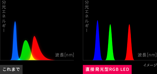 RGBの各LEDを独立して高色純度で発光することで、従来比110%*1の広色域化を実現。これまでにない自然で色あざやかな高画質を実現。