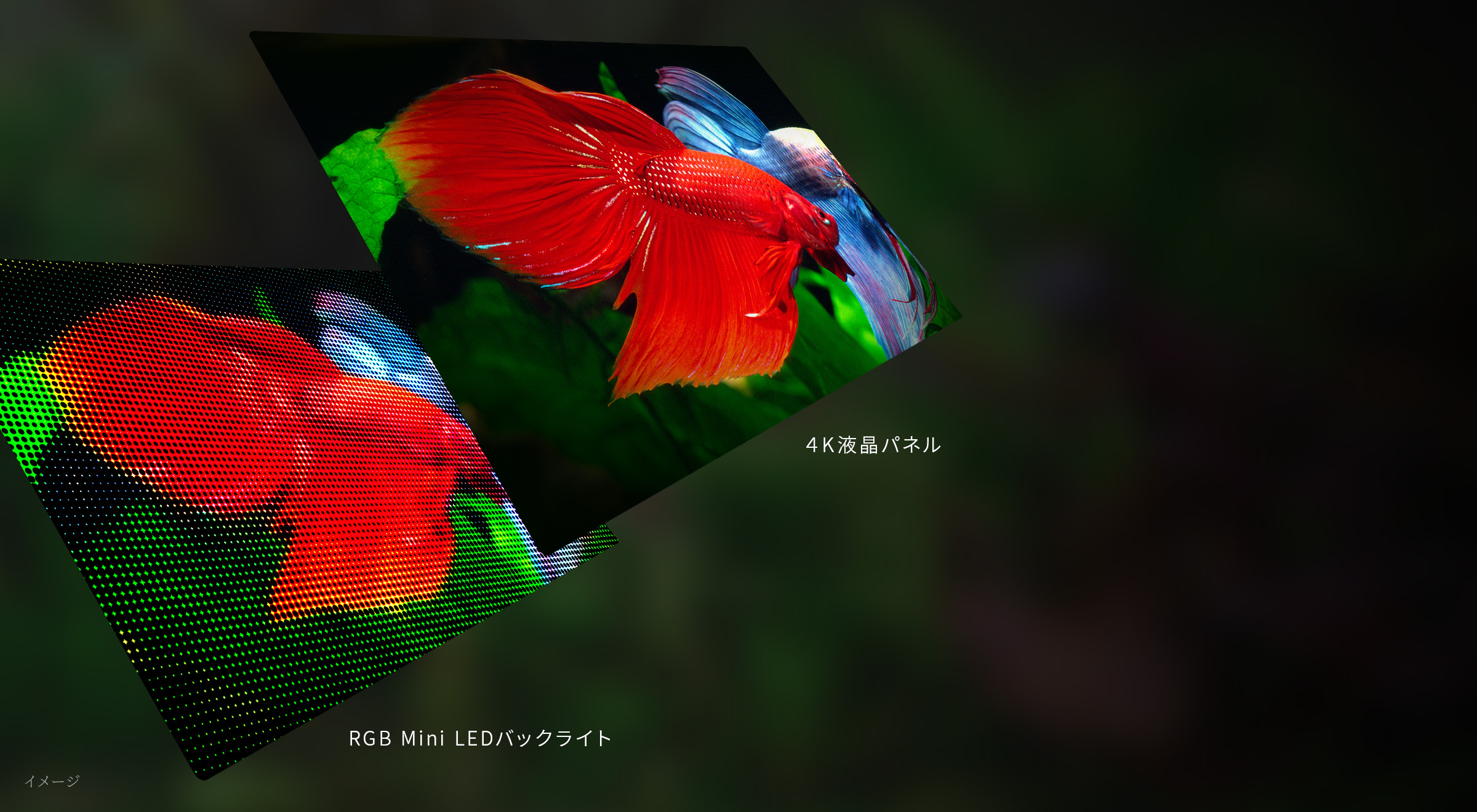 レグザエンジンZRαがAIを用いて緻密に映像解析し、RGBバックライト液晶パネルの色表現力を最適化。