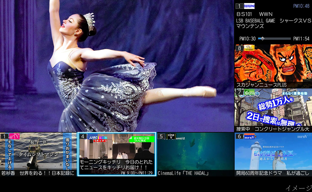 放送や録画番組を楽しみながら、放送中の地デジ番組最大6チャンネルを画面上に同時に表示可能*3。オンエア中の地デジ番組がひと目で分かります。