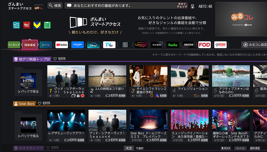 生成AIを活用することで、対話形式で見たいものを探すことができます。推しているタレントや長いタイトルの番組を手軽に探すのはもちろん、あいまいなリクエストも理解し、話題になっているコンテンツや、まだ出会っていなかった多彩なコンテンツをご提案します。