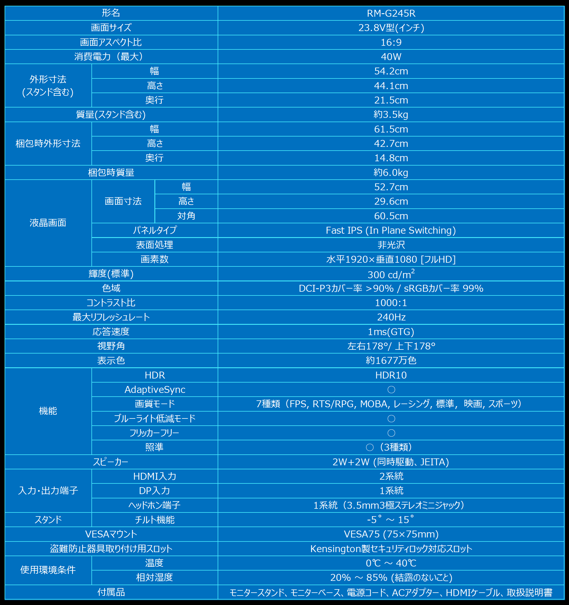 広視野角のFast IPS*(In Plane Switching)パネルと高リフレッシュレートで