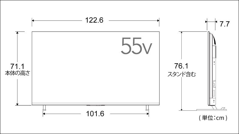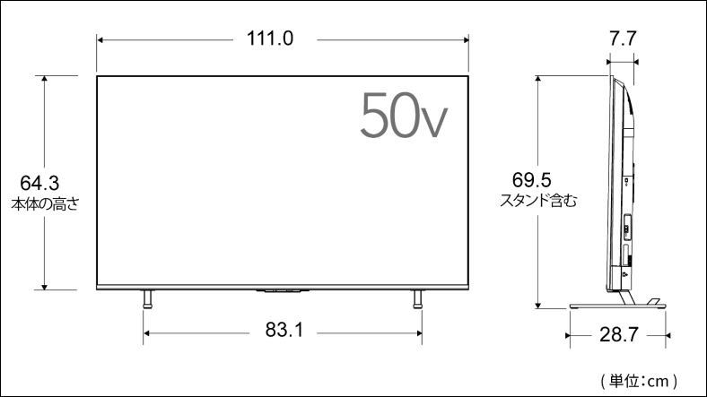 幅 142.8cm,高さ 80.4cm,対角 163.9cm |