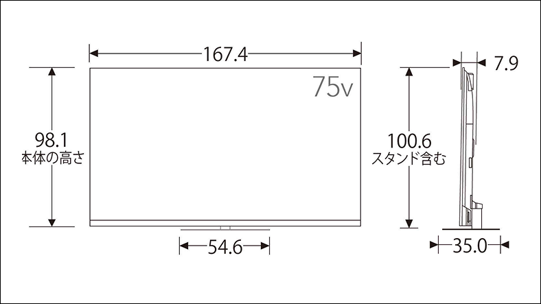| 外形寸法(スタンド付き) 幅×高さ×奥行 | 167.4cm×100.6cm× 35.0cm |